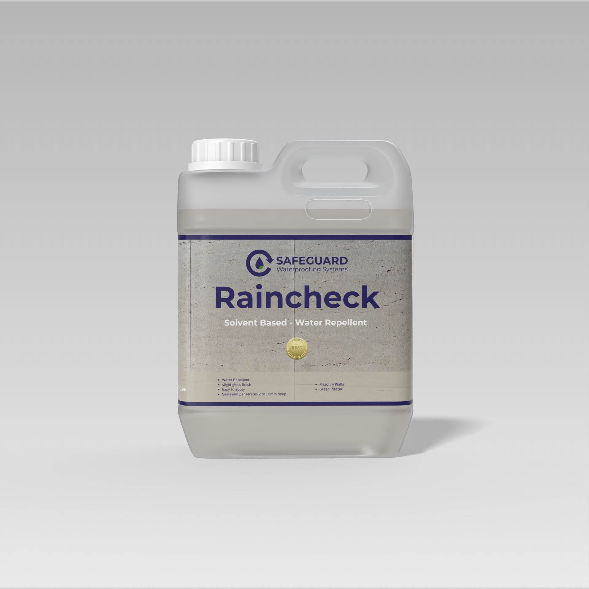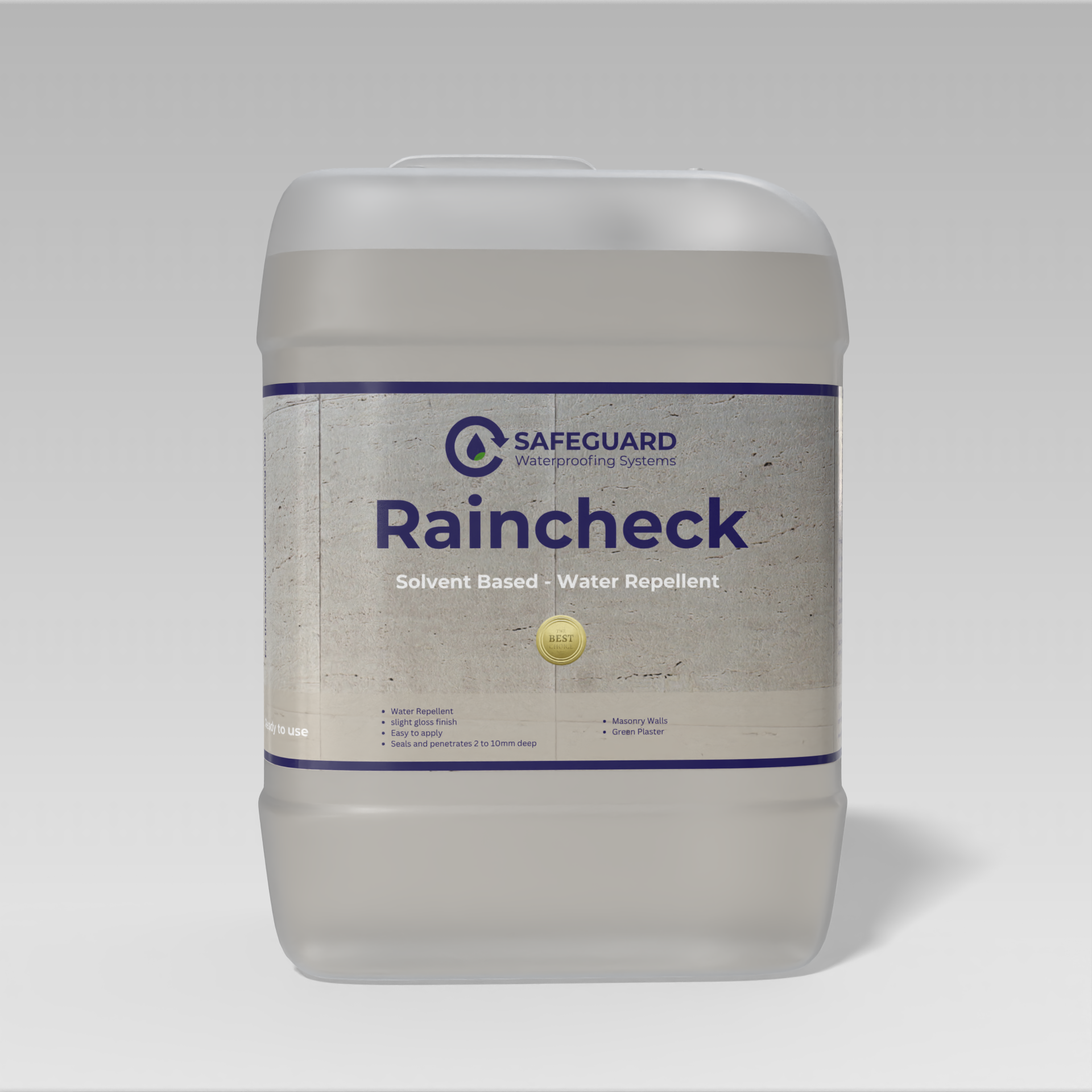 Raincheck is a colorless, water- repellent for masonry based on UV resistant siloxane resins. Its resistance to alkalis is greater that of the standard methyl silicone resins. Raincheck can be used on old and new buildings to protect brick, stone and concrete facades from penetrating damp