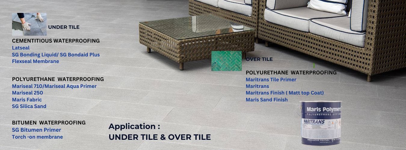 Waterproofing solution for Roofs, Tiles, Showers, Basements etc.